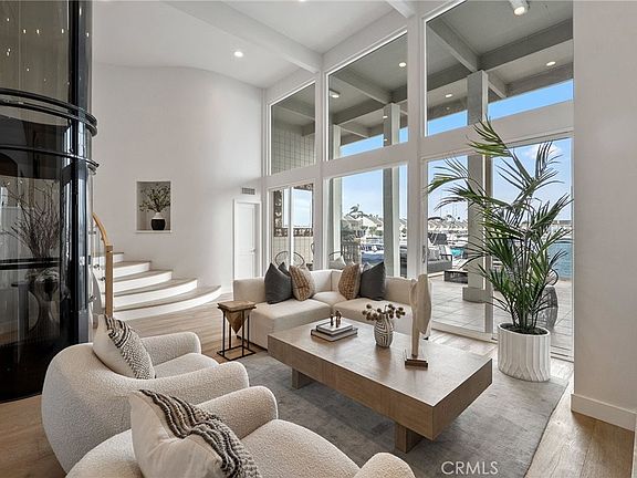A Coastal Dreamscape Like No Other.... Nestled along the illustrious Huntington Harbor Peninsula, this sanctuary is where the rhythm of the Christiana bay meets the pinnacle of bay-side luxury. A rare jewel. Drive through the private gated Tennis Estates, where the symphony of a cascading lush green landscaping sets the tone for the serenity within. Beyond the grand entrance, a 3-story atrium bathed in natural light welcomes you, while towering 20-foot ceilings create an airy expanse that mirrors the vast water beyond. The open living spaces are designed to dissolve the boundary between indoors and out, with a striking glass bay wall offering uninterrupted views of the water’s ever-changing canvas. A versatile living room flows seamlessly onto the spacious cantilevered bay-front patio, where the ultimate in waterfront indulgence awaits— along with a 35 ft dock to moor your Duffy or boat. The ground level also includes a family/media room with a wetbar for entertaining & also a full bath with ample closets which could be converted to a 4th bedroom. Ascend the modern stunning staircase, or take the elevator to the second floor to the gourmet kitchen, a marvel of modern design, boasting top-tier appliances, custom wood cabnitry 2 large pantrys and a large island with quartz counters perfect for entertaining friends and family, with an additional formal eating area, overlooking the water. The third level reveals three bedrooms, including the opulent primary en-suite—a haven of comfort, where you"ll greet the day with the morning light dancing on the bay as you awake. Enjoy a large retreat area while sipping on your morning coffee savoring the view. A large walk in closet with built in's, a convient laundry chute and stunning bath complete the primary. The floors are beautiful hardwood on the first 2 levels and new carpets on the upstairs bedrooms. As a final touch the property offers an elevator to all 3 levels, 4 security cameras and a separate 2 car garage. Whether you're hosting a soirée under the stars, the magical Christmas Boat Parade event or just savoring a quiet sunset paradise, this is where endless summers and nautical dreams come to life. A rare fusion of elegance, adventure, and bay front magic—this is coastal living at its most extraordinary. There is no other waterfront with all the amenities this rare jaw dropper offers, make this your forever beach home or beach get away making generational memories. .