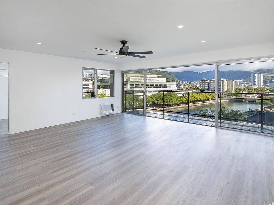 Panoramic Mountain, Valley, and Water Views await you! Located just one block from the beach, this well managed, boutique building has curb appeal, unique architectural features, and is convenient to everything Waikiki has to offer! The main living space is a generous 17' by 20' feet in size with large oversized sliding doors allowing you to enjoy cool, shady, breezy afternoons in true Hawaiian style. Apartment 708 is a corner unit and has been completely remodeled with new ceilings, cabinetry, appliances, flooring, fixtures and more! There's even AC for those occasional muggy days! The primary bedroom features an ensuite bath and is privately located in the back of the home. Marina Towers is located on a restricted road fronting the canal and it's amenities include a Heated Salt pool, BBQ, attractive Recreation Area, Workout Area, Locked Bicycle, Surf board and Storage rooms as well as a car wash and an attentive resident manager. A covered parking stall and storage space is included in the sale. Additional motorcycle/moped parking on site but subject to availability. Marina Towers is fully insured with a reasonable maintenance fee.