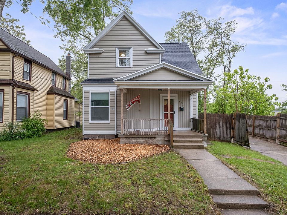 Welcome to this incredibly charming and well-maintained 3-bedroom, 2-bathroom home, ready for its next owner! Just blocks from Dickinson Buffer Park, you'll love having easy access to scenic walking and hiking trails right in your neighborhood. Step onto the spacious front porch and into a welcoming entryway that showcases original woodwork and vaulted ceilings. The bright, open living room features newer paint and windows, offering a comfortable space to relax or entertain. Off the living room is a large main-floor full bathroom with laundry, and the primary bedroom, which includes convenient Jack-and-Jill access to the bathroom. The updated open-concept kitchen and dining area are perfect for everyday living, featuring fresh paint, backsplash and counters, along with a new smart refrigerator, microwave and dishwasher. A large sliding door opens to the back deck and fully fenced yard, ideal for summer gatherings and playtime. Upstairs, you'll find two generously sized bedrooms, including one with an oversized closet currently used as an office. A second full bathroom with updated features completes the upper level. Outside, you'll appreciate the new roof (2023), and bonus basement space that is accessible from the backyard, perfect for storage and already waterproofed for peace of mind. Seller requests 45 days possession after closing. Offers due Tuesday, 6/3 by noon, and will be reviewed that evening. Don't miss your chance to make this lovely home yours and schedule your private showing today!
