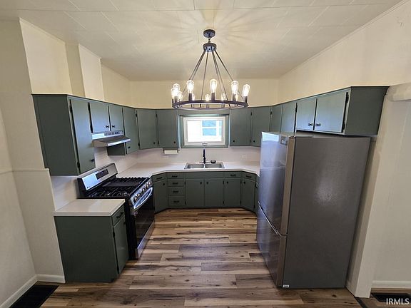 Fantastically Remodeled with Greatest Care by Craftsmen. Their desire is for the home to be A Blessing for the new occupants. Home has Almost 1200 Finished Square Foot Plus spacious basement. 3 Bedrooms, Mirror above vanity has capability of illuminating around it's parameter and defrosting. Sized Garage accommodates 2 cars, concrete sidewalk between home and garage. Garage includes LED lighting, work bench, garage door opener. Alley access to garage. Like Brand new interior! NEW ~ Never Used: Stove/oven, refrigerator included. The kitchen cabinets include 4 metal lazy Susan's! New light fixtures/ceiling fans and flooring throughout.