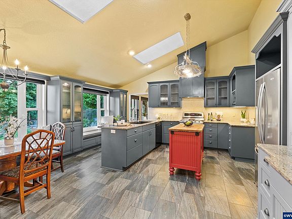 Single level beauty feels like country living but is only minutes from Corvallis! Exquisite custom kitchen features granite countertops and built-in seating. Wheelchair-accessible primary bath has custom cabinetry, quartz counters, and tile floors! Vaulted ceilings and massive stone fireplace in great room opens up to an expansive patio and a 2 bedroom integrated ADU. Stunning yard with commercial greenhouse, raised beds, fruit trees, & berries! Garage has attached workshop and there's room for RV!