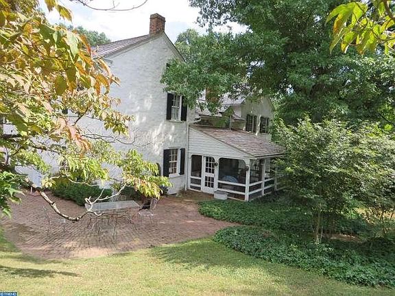 Stunning 240 year old stone farmhouse on 18 acres in Birchrunville. Old paving brick and wide plank floors, expansive magnificent living/great room with exposed beams and wood burning fireplace. Cozy den with walk-in fireplace, screened-in porch, 5 bedrooms and 3 1/2 baths are just some of the amenities. New cedar shake roof, updated plumbing and electric. Brick floored office with outside entrance. There is a separate 2 BR 2 BA guest house, currently rented for $1,500/mo. Five stall barn with heated tack room and full bath. Also a diesel powered generator to run the entire farm. A very special property.