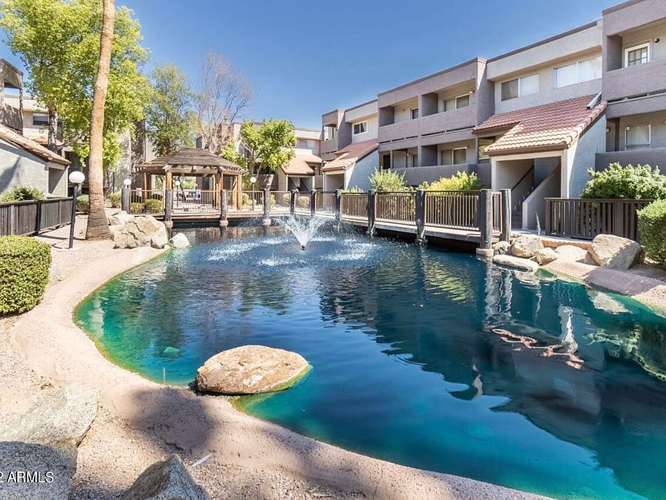 Come check out this chic condo located in the highly sought after Dobson Ranch Community. This 2 Bed 2 bath unit is perfect for a first time buyer, small family, or even a great rental pickup. The unit has been freshly painted and bathrooms have been remodeled. The community offers, Ramada, BBQ grills, Tennis courts, pickle ball, basket ball, Play grounds, Lake/fishing heated pools and spa, tons of group options to stay active and meet new people. Come see this unit and be ready to become a Rancher for life.