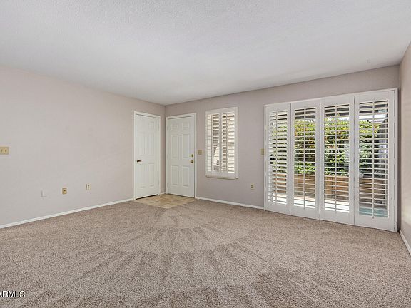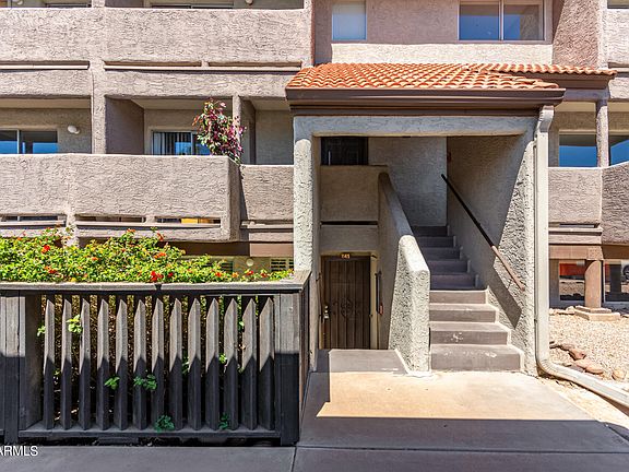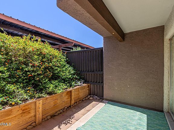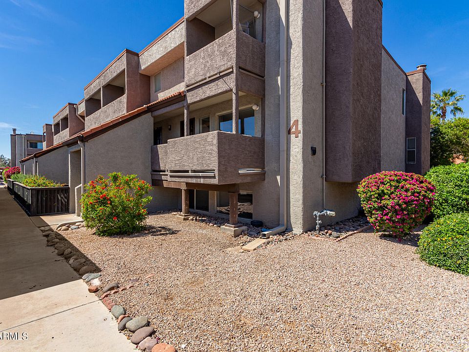 This condo has fresh carpet, fresh paint, fresh blinds, and is ready for your personal touch! This unit is slightly below-grade which keeps the temps stable and cool during the hot AZ summers. A sliding glass door opens to connect your living space to a private patio with terraced landscaping. Your dedicated parking space is just outside the door so the days of hauling groceries across the community in the rain are far behind you. The washer and dryer are located inside this home and come with the sale, along with the fridge! It's ready for move-in, time to make it happen! Enjoy the ponds (under renovation until summer) and the cool swimming pool just around the building as well as the many offerings of the Dobson Ranch Master Community.