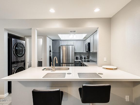 Golf Community Living in a Prime Location! This 2-bed, 1.5-bath townhome offers comfort, convenience, and resort-style amenities in a vibrant golf community. Inside, the home features beautiful plank tile flooring. The master bedroom features a walk-in closet and full bath, while the open layout includes a convenient breakfast bar for casual dining. The updated kitchen showcases stylish cabinets and backsplash, as well as stainless steel appliances. Step outside and enjoy a community surrounded by ponds, a central water feature, and amenities such as a clubhouse, pool and spa, playground, golf, and more. With easy access to the US 60 and 101 freeways, this home is the perfect blend of relaxation and accessibility!