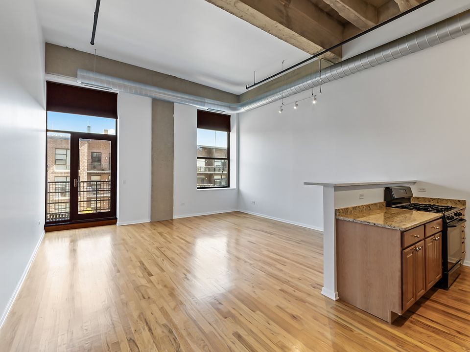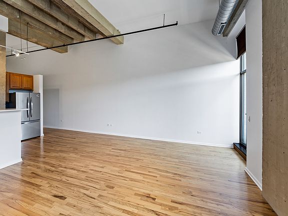 Gorgeous West Loop loft with soaring high concrete ceilings and wall to wall windows. High floor and north facing with a private attached balcony. Hardwood floors throughout, new quartz counters and all freshly painted. New vanity in bathroom and freshly reglazed shower and bath tub. Washer dryer in unit. Gas forced air and central air conditioning. Doorman, on site management, gym, and common roof top deck. No pets please. Available for immediate move in.