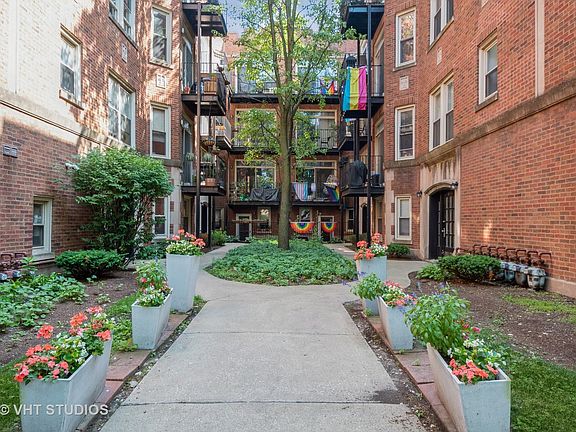 Step into this bright and stylish condo, featuring an open floor plan, this home boasts exposed brick walls, hardwood floors, and spacious living and dining areas-perfect for both relaxing and entertaining. As well as a private den or office space. The modern kitchen is equipped with granite countertops and new stainless steel appliances. All new bath with neutral decor. New carpeting in both bedrooms. Enjoy year-round comfort with central air and the convenience of in-unit laundry. Located in a vibrant courtyard community, you're just a short walk to the lakefront, parks, beaches, the Red Line, and Metra. With a Divvy bike station right outside, getting around couldn't be easier. A perfect blend of charm, location, and convenience-this is the place you'll want to call home!