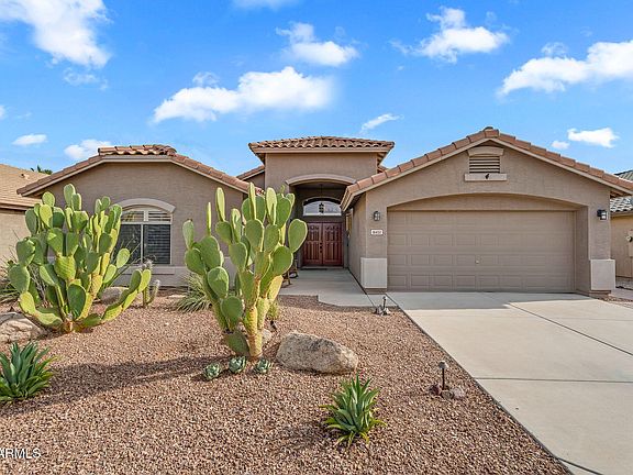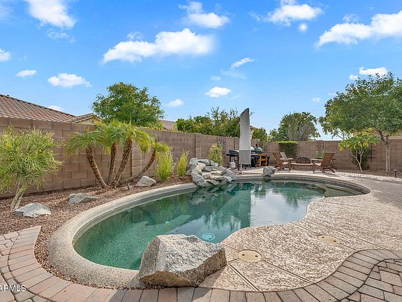 Out back, enjoy a private oasis designed for Arizona living. The saltwater pool features a built-in umbrella to provide shade during warm afternoons, while the firepit sets the mood for evening gatherings. Trellises line the side yard block walls, offering potential for vertical gardens or flowering vines, and the epoxy-coated garage and patio ensures durability and style. The yard is fully automated with irrigation and lighting. Low maintenance and high enjoyment.