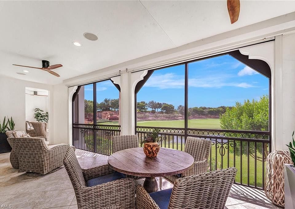 A MUST SEE stunning WCI First-Floor FURNISHED PENTHOUSE in Carrara at Talis Park! This is an opportunity to own a condo unit with direct golf course, lake, and water cascade fountain views overlooking the first hole of Talis Park’s prestigious, award-winning golf course. With 2,950 sq ft under air, this luxury unit lives like a single-family home and offers: 3 spacious en-suite bedrooms for ultimate privacy, a dedicated den/office with private loggia, an expansive chef’s kitchen with natural gas cooking, a 700 sq ft wraparound loggia ideal for entertaining with serene views, a stylish dining area featuring built-in dry bar, wine & beverage coolers. Additional upgrades include: Impact-rated doors/windows, electric hurricane screens on all loggias, custom kitchen cabinetry with soft-close, quartz countertops, wood flooring, plantation shutters, custom primary closet system, and a lock out common elevator to your private foyer. This end unit and building is located just steps from the Carrara residents-only pool/spa, gas grills, driving range, and Casa Cortese sports pub. You’ll enjoy two deeded under-building parking spaces and a private storage unit. Talis Park’s award-winning amenities include: The Vyne House Clubhouse (Golf Inc. Magazine’s Clubhouse of the Year), Core Fitness Wellness Center, Esprit Spa, Fiona’s Market Café, a recently renovated Top-20 Florida golf course designed by Pete Dye & Greg Norman, a sports park that includes 5 tennis courts, 4 pickle ball courts and bocce. Enjoy golf cart-friendly access to all amenities throughout the Club, including a trip for your furry family members to the Talis Park dog park. A Sports Membership is mandatory, providing full club access, all racquets sports, 6 golf rounds in-season, and unlimited golf May-October with reciprocal play. Talis Park offers luxury living in prestigious Naples, FL, conveniently located near world-class dining, shopping, I-75, and RSW airport. This spectacular unit is not to be missed!