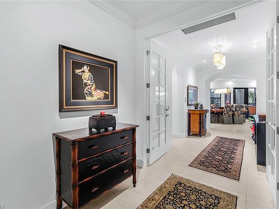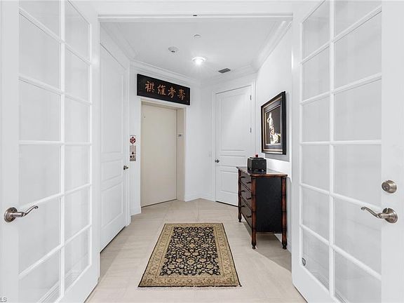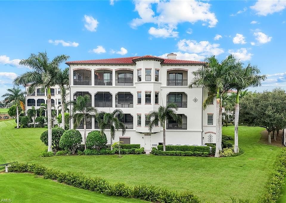 TOP FLOOR PENTHOUSE WITH PRIVATE VIEWS OF THE FIRST HOLE AND TWO WATERFALLS AND PRIVACY! Step into this exclusive penthouse overlooking the first hole and cascading waterfalls in the Carrara enclave of Talis Park, where timeless design and refined upgrades create a sense of private serenity. Soaring ceilings, tile flooring throughout, designer lighting, and zero-corner sliders set the tone for seamless indoor-outdoor living, filling the home with light and calm. As you enter the open-concept living and dining areas, you are immediately greeted by sweeping golf and water views that frame each moment in peaceful elegance, providing both intimacy and space for entertaining. From here, you flow into the chef-inspired kitchen, where crisp white cabinetry, gas cooking, a Miele dishwasher, custom pull-out storage, and generous counter space meet convenience, complemented by a Kinnectico water system with reverse osmosis and instant hot water dispenser. The kitchen opens to a sunlit eat-in nook surrounded by windows, perfect for casual meals or morning coffee. Built into the nook, a custom wine and beverage center offers generous storage for bottles, sleek countertops, and lighted upper cabinetry for display and organization—blending style and practicality for entertaining or everyday enjoyment. Continuing through, the expansive wraparound lanai—freshly painted and offering multiple seating areas—feels like an extension of the home itself, blurring the line between indoors and out. Remote-controlled electric roll-down hurricane shutters ensure effortless protection while preserving the stunning panorama. As you move into the primary suite, the space unfolds as a private haven, featuring dual sinks, soaking tub, separate shower, Toto toilet seat, remote-controlled blackout shade, and a custom California Closet. Each guest suite offers relaxing comfort, ample storage, and thoughtful design, ideal for vacation living or enjoying Southwest Florida, while a versatile den provides flexibility as a home office, library, or media space, maintaining the home’s sense of ease and refinement. Every detail enhances daily living, from electric blinds, trash chute, a self-cleaning tankless water heater, and private elevator access with secure video entry. A large storage room, with a dehumidifier, adds convenience, while an IFLO system ensures additional peace of mind. As you step back and take in the full panorama, you realize this isn’t just a home—this penthouse is your private sanctuary in the heart of Naples, complete with access to Carrara’s private resort-style pool and sundeck, along with Talis Park’s world-class amenities: championship golf, tennis, pickleball, bocce, spa services, fitness, and multiple dining venues. Perfectly situated just minutes from beaches, shopping, and fine dining, every moment here feels deliberately calm, effortless, and luxurious.