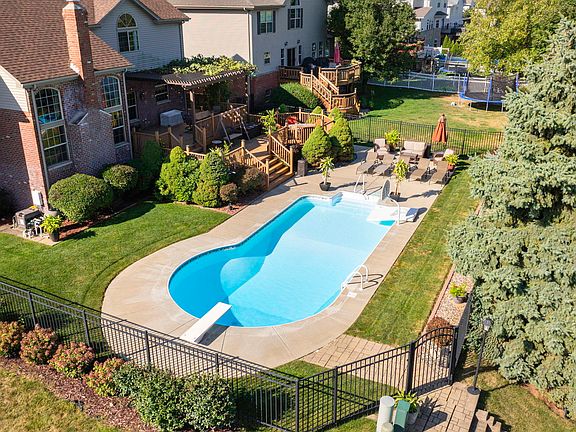 Welcome to this stunning two-story home located in the desirable Karen Springs neighborhood. This property is a perfect blend of comfort and elegance. As you head inside, you're greeted by the two-story foyer and spacious open floor plan, filled with natural light and 9ft ceilings creating an airy and expansive feel throughout the main living areas. The main level features a grand two story family room with a cozy brick fireplace that runs the length of the wall, a formal dining room perfect for entertaining and a modern kitchen with granite countertops, stainless steel appliances, and an island with seating for casual dining. Kitchen also includes a pantry closet, an abundance of cabinets and a reverse osmosis providing you with purified water right at the sink. Off the kitchen, you'll find the main level laundry complete with utility sink and closet for additional storage. Garage access is off the laundry room that provides room for three cars, heating system and access to the backyard. The second floor offers a luxurious master bedroom with a vaulted ceiling, that you enter through double doors, with an ensuite bathroom, complete with a soaking tub, separate shower, dual vanities, and a huge, walk-in closet. You'll find three additional bedrooms on the second floor that are generously sized, ideal for family or guests and are serviced by a hallway guest bathroom, providing convenience and privacy for visitors. Head outside to your private backyard oasis, featuring a beautiful in-ground, heated, saltwater pool that includes stairs for easy access and a diving board. Your pool is surrounded by a spacious concrete deck, perfect for lounging or hosting summer barbecues and includes an additional two-tiered, maintenance-free deck, perfect for accommodating larger get togethers. The meticulously landscaped fenced in yard offers plenty of privacy and also views of the pond where you are welcome to fish, paddleboard, etc.. The home's exterior is in great condition, with a new roof, gutters, and garage door installed in 2019. This home is complete with a full basement, with an extra bedroom, home theater (chairs and projector stay) and additional storage. Enjoy the tankless water heater ensuring endless hot water and energy efficiency. Perfect location near plenty of shopping, parks, restaurants, highway access and so much more. Schedule your showing today!