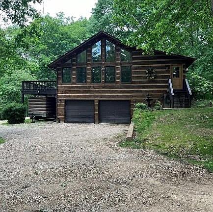 This beautiful 3 bedroom log home sits nestled in a quiet subdivision where you can enjoy all the beauty of nature from your own back deck. Inside you will find a cozy family room with a fireplace, and a living room with a wall of windows to enjoy the views of the 3.59 acres of wooded land. You have plenty of room to entertain family and friends with the kitchen and formal dining room. The 4-car garage and separate shed allows you plenty of space for all of your projects or storage needs. While at home you will feel like you are in the heart of nature, but you are only 15 minutes from Washington for any shopping needs you may have. This property allows for the best of both worlds!