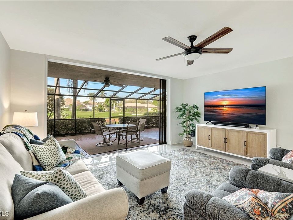 This Fresh, Sleek, Contemporary, 3 Bedroom, 2 Full Bath with Adjoining Carport (Just Outside the Front Door)- Will Complete Peaceful, Serene Feeling One Looks For When Coming Home. Designer Finishes Throughout. Light Wall Hues with Highly Polished Large Porcelain Tile Create a Big and Bright Look. Sellers Opened up the Kitchen, Creating a Large Gathering Island and Breakfast Bar. Quartz Counters, Seafoam Green Tile Backsplash, LG Appliances, Extra Pantry. Furniture Designed Perfectly to Scale. Being Sold Turnkey (Furnishings are NEW) with a small exclusion list. Super Size Screened In Lanai, Can Hold a Large Outdoor Living Set and Table & Chairs. Must See Views! Be Sure and Watch the Video! HVAC-New, Breaker Box, Square D, HW Tank- New. The Paid For Building Painting is Being Started Soon. Roofs- NEW. The Forest Country Club Membership is Optional- There Are Currently New Resident Discounts Being Offered. The COA Fees for the Condo DO Include the Master Association Fee, Water, Internet/Cable, Pest, Lawn/Maintenance, Roads, Pool, Grills. Please Note some amenities listed require membership in the CC, The Forest Community Offers 2 Manned Gated Entries, Over 8 Miles of Sidewalks, Children's Park, Bike to Lake's Park for Market Day, Or a Near By Coffee Shop, RSW is Just 15 Min, Sanibel 20 Min, FMB 25 Min, Grocery Stores 5 Min, Schools Nearby, Houses of Worship within 15 Min, Our Golf Courses Are Audubon Certified, Wildlife Everywhere! This is Your Time, Come Live & Play In The Forest!