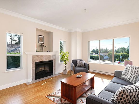 Location location location! Welcome to Ocean Pointe, a beautifully maintained development situated in downtown Comox, across the street from Anderton Park, and next to the golf course. This well kept, second floor condominium features two-bedrooms two-bathrooms, offers tons of natural light with windows on three sides with views, and is an end unit which ensures quiet enjoyment. The primary suite is a generous size and features a 4-piece washroom, there is a sundeck off the kitchen, and excellent bedroom separation. The highlight is the fact you can leave your vehicle in the carport and walk to most amenities, the marina, and the shops and restaurants Comox has to offer.