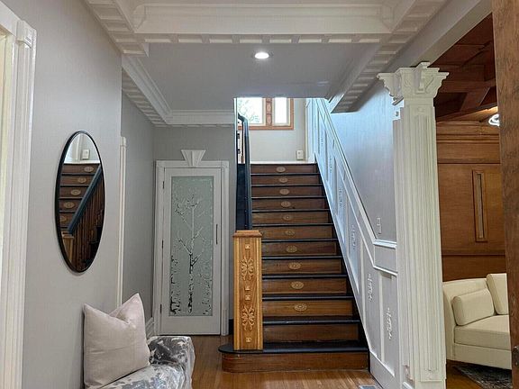 This is a true historic gem. 106 year old Boston Edison Colonial with the perfect blend of historic charm and modern amenities.Coffered 9 foot ceilings created with reclaimed wood and lovely wet plaster walls. Renovated granite kitchen, stainless appliances flows into Butler's pantry, powder room and private office/family room. Massive Primary Suite on the second floor with sitting area, walk-in closet and full bath with a walk-in tub and two showers. There is also a large Au Pair suite on the 3rd floor with original clawfoot tub. Modern amenities include central air conditioning which is rare for a historic home. Bonus family room on main floor and powder room. Natural light filled every room, high ceilings, well maintained and fenced yard with brick paver back porch and 2 car garage.