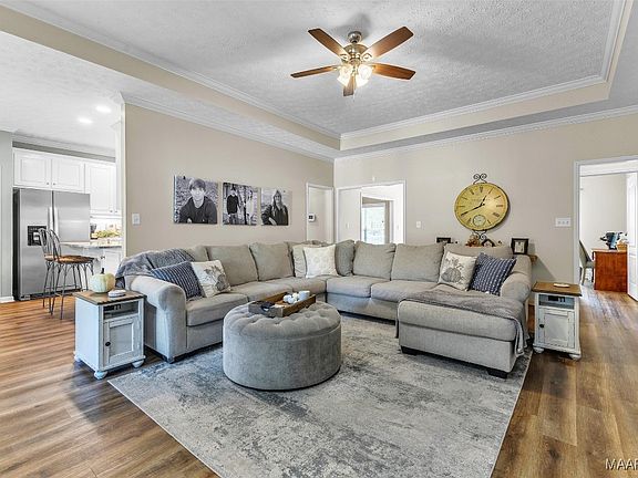 Welcome to your own private retreat in Prattville, a beautifully maintained 4 bedroom, 2.5 bath home set on 3 peaceful ACRES. Ease your mind knowing these major updates have already been taken care of: NEW HVAC (2021), NEW ROOF (2022), NEW WATER HEATER (2022), NEW LVP FLOOR (2025), NEW CARPET (2023), KITCHEN & PRIMARY BATH UPDATE (2023), NEW APPLIANCES (2023), NEW FLAGSTONE FIREPIT (2024). From the moment you step onto the wide front porch, you’ll feel the warmth and care that has filled this one-owner home. Inside, the foyer welcomes you in and leads to a formal dining room on one side, perfect for hosting holidays and family dinners. Just beyond, the large den draws you in with its gas fireplace and tray ceilings, creating a cozy and inviting space to gather.