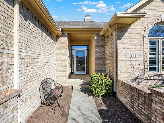 Gas fireplaceLarge exposed aggregate patioDouble vanitiesGranite countertopsCustom crown moldingCozy window seatNewer cabinets