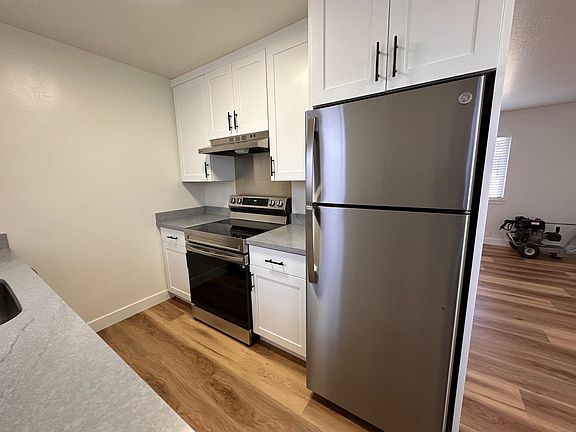 Water, garbage and dedicated parking included in rent. Everything in this apartment has been completely remodeled and YOU WILL BE THE FIRST TO RENT! This 2-bedroom apartment is located in a peaceful, prime location, walking distance to shops, restaurants, schools and parks. Only 4 units in the building. This apartment features a brand new custom kitchen with brand new cabinetry, stainless steel appliances, quartz countertops, wall to wall hardwood LVT flooring, dual paned vinyl windows, and a stunning bathroom with a stylish vanity -- all brand new - from the tub to the toilet! Key Features and amenities: - Spacious living area with ample natural light - Two large size bedrooms - Ceiling fans in all rooms - Fully-equipped kitchen with stainless steel appliances (BRAND NEW cabinets, countertops and appliances) - Completely remodeled bathroom with new tub, tile, vanity and toilet - Brand new Wood LVT flooring throughout - Dedicated carport parking attached to property - Large personal storage area - On-site laundry facilities - Peaceful backyard common area with bike storage - High-speed internet access available - Close proximity to shopping centers, restaurants, and entertainment venues Location: Conveniently located near major highways and public transportation routes, commuting to work or exploring the city is a breeze. Enjoy easy access to parks, schools, and recreational facilities, making this apartment an ideal choice for individuals and families alike. Water, garbage and dedicated parking included in rent.