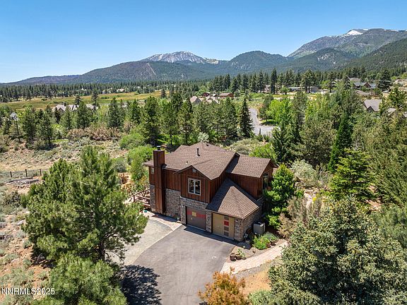 Nestled on a private 1.0-acre view lot, 16460 Jefte Court is a thoughtfully upgraded, energy-efficient home offering 1,873 square feet of comfortable living space plus an additional 826-square-foot basement, perfect for a variety of uses. This remodeled well maintained 3-bedroom, 2.5-bathroom home is surrounded by breathtaking natural scenery and offers panoramic views of the mountains, ski resort, and the adjacent Montreux Golf Course community. As you step inside, a dramatic vaulted ceiling welcomes you into a bright and airy living and dining area adorned with rich wood-framed windows that perfectly frame the surrounding landscape. A contemporary ceiling fan with LED lighting adds a modern touch, while a wood-framed sliding glass door opens to a wraparound TREX deck for seamless indoor-outdoor living. Terra cotta toned porcelain tile floors extend throughout the downstairs living areas and are highlighted by decorative glass accents on the steps leading down to the family room. The kitchen, fully remodeled in 2025, features elegant quartzite countertops, a complimentary porcelain backsplash, and new soft-close Cherry cabinetry. The space is equipped with a new stainless steel LG refrigerator and dishwasher, along with a professional-grade Jenn Air range. Under-cabinet LED lighting adds ambiance and functionality, and a pass-through to the living room includes a quartzite sill that ties the space together. Adjacent to the kitchen, the casual dining nook offers comfort and convenience and flows into the family room featuring a wood-burning stove with a tile mantle. Off of the family room French doors open to the back deck and stairs leading to the backyard. Upstairs you will find a loft, master bedroom and two guest suites. The versatile loft space is ideal for a home office, reading nook, or exercise area. The spacious master suite boasts warm bamboo wood floors and a barnwood-framed window that offers serene views of the mountains. The luxurious remodeled en suite bathroom includes a contemporary garden tub with a separate handheld showerhead, LED-framed mirrors with adjustable lighting , a dual vanity with granite slab countertops, undermount porcelain sinks, antique bronze fixtures, and functional baskets and pull-out drawers. Large-format porcelain tile graces the floor, tub, and shower surrounds, while the spa-like shower is enhanced by a river rock base, brushed nickel rain shower, inset shampoo shelves, and a handheld shower wand. For added comfort, the bathroom features heated tile floors and a cedar-lined walk-in closet. Two additional guest bedrooms upstairs are outfitted with new carpet and wood-framed windows and share a full bathroom with dual vanities, a shower/tub combo, and a privacy pocket door separating the water closet and bath area. Below the main living areas an expansive basement offers unmatched versatility, with ample space for recreation, storage, or a home gym. It includes a 2019 Sunlighten infrared sauna with customizable settings, LED lighting, and an integrated sound system. The laundry area features an LG front-loading washer and a LG dryer, both new in 2023. Additional basement amenities include comfort padded flooring over much of the concrete, built-in cabinets and shelving, a storage closet, a new window with scenic outdoor views, a sump pump, and a solar inverter with a battery backup system located beneath the rear deck. The attached garage includes a 240V, 50-amp outlet for an EV charger and an additional outlet on the north wall. A new hot water heater was installed in 2025, and an interior access door connects the garage to the home. Energy efficiency is a standout feature of this home, thanks to sun-tracking solar panels mounted separately on the south side of the lot, a backup battery system, and a connection to NV Energy's net metering program. The solar battery backup powers critical systems. See our full features list in documents, also as listed on the virtual tour description.