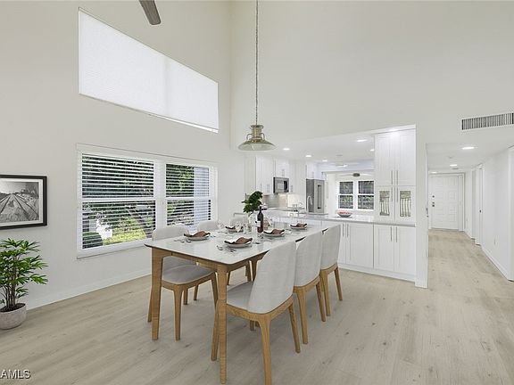Consider this Your Invitation to View a Premiere Listing Featuring A Lifestyle You will Design to your Liking! (Virtually Staged) This Unit Has Been Totally Updated with All the Bells and Whistles, Love the High Ceilings and Tropical Breezes, Large Lux Oaks, Lush Landscaping, a Lake in your Backyard with Fish. Velvet Green Views of the Championship Bear- Hole #13. Sidewalks, Pet Stations- Yes, Pets permitted. Wide Plank Luxury Vinyl Flooring,& Tile. A/C- 2023, HW-2021,Custom Closet Systems, Open Air Kitchen- Quartz, Pop Up Plugs/Outlets, Pull Out Drawers, Pantry w/Pull Outs/Custom Cabinetry ,Soft Close Drawers ,Wine Cooler, SS Appliances to Please and Perform. LG Washer & Dryer. Hurricane Rated Windows, Some Shuttered, Electric Lanai Storm Shutters- 1sm one is manual. Hunter Douglas Custom Window Treatments include Remote Honey Comb Blinds, Silhouette Blinds, Great Carport Next to the Unit. Tropical Pool with Grills, Seating Areas, Sun or Shade! COA Includes Master Fee, Wifi/Internet, Water/Sewer/Garbage/Insurance/Pest/Master Flood Policy Also. Great Investment Opportunity! We Have a Children's Park, Or Bike to Lake's Park, RSW Airport Just 15 MIN, Sanibel 20 Min, FMB 25 Min, Restaurants, Shopping Everywhere! Come Live and Play in The Forest!