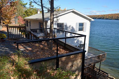 **NEW PRICE**KEUKA LAKEFRONT**Make those DREAMS COME TRUE Affordably!** Easy, YEAR-ROUND, low-maintenance living with DRIVE-UP ACCESS, spectacular lake views from every room, and MINIMAL YARDWORK-and it's all 100% guaranteed! This tri-story home offers 4 parking spaces, central air, a 75' shale beach, dock, and outdoor shower. Spacious deck for entertaining, Open floor plan with antique oak mantel gas fireplace. Additional 750' in lower level waits for your finishing touches. PRICED BELOW ASSESSMENT! Close to Wine Trail! Just unpack your bags and ENJOY LAKE LIVING AT IT'S BEST