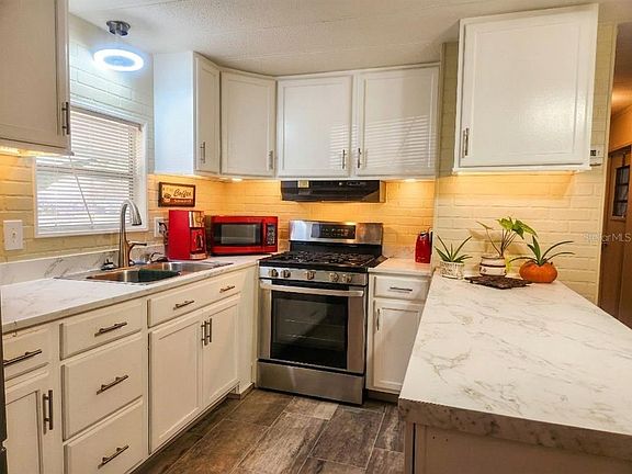 Not lot rent. No HOA. Central Air. Clean, updated, and move-in ready — this affordable home is truly better than most in this price range. Set on a fully fenced quarter-acre lot, the property features a beautifully landscaped front yard with mature oak trees and plenty of usable outdoor space. Enjoy a large two-car carport, a huge front patio, a screened back porch, and a wheelchair ramp for easy access. A new, clean 16x10 shed with A/C and its own front porch adds the perfect spot for storage, hobbies, or a small workshop. Inside, the home offers a bright, modern feel with a beautifully updated kitchen, complete with built-in benches under the bar. The spacious laundry/utility room off the bedroom provides excellent extra storage and workspace. The home is clean, comfortable, and well maintained — a standout option for affordable living in Marion County.