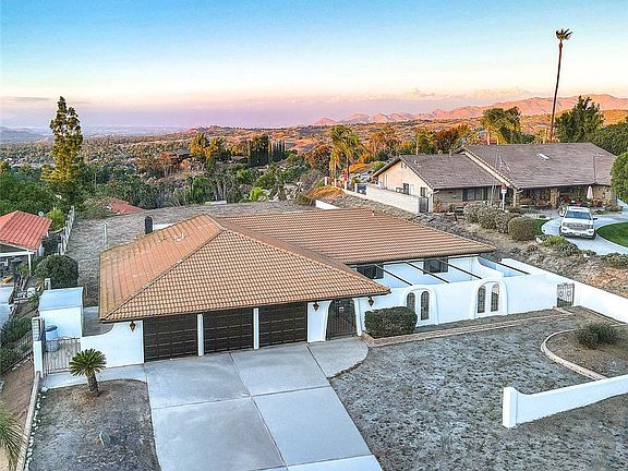 WOODCREST - STUNNING VIEWS & SINGLE STORY RANCH RETREAT! Experience Spectacular, Sweeping city lights, canyon, and mountain views from this beautifully maintained custom single-story ranch home, ideally located in the highly sought-after Woodcrest community. Set on a spacious half-acre lot, this home - on the market for the first time - is truly a rare find! Step inside to discover an open and inviting floor plan featuring a family room with breathtaking views, sunken formal living room, and classic brick fireplace perfect for cozy evenings. The large kitchen opens to the family room, creating an ideal layout for gatherings. Additional highlights include generously sized bedrooms, formal double-door entry, and an enclosed front porch perfect for relaxing. An added bonus is the attached 3-car garage with extra workspace, storage cabinets, workbench and ample RV-Parking. In the pool-sized backyard you will enjoy a covered patio and an abundance of space ready for your vision. This exceptional home has the perfect blend of comfort, space, and pride of ownership - with no HOA and low taxes. Don't miss your chance to make this Woodcrest gem your own. Call today for a private viewing!