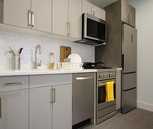 * Full suite of stainless steel appliances, including dishwasher and microwave