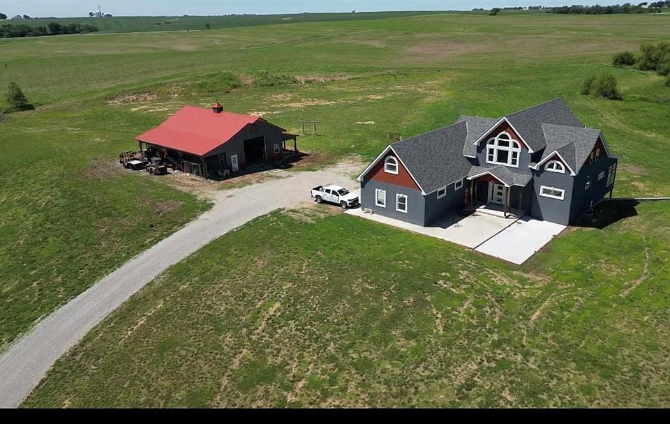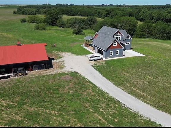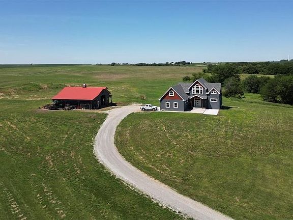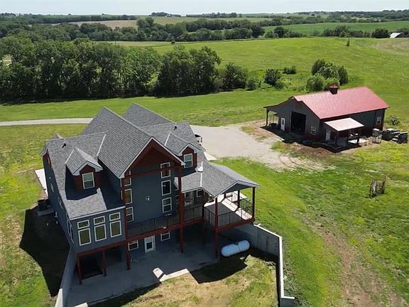 This beautiful newer home is conveniently located just a half mile north of Highway 36 on a nicely paved road. Built in 2018, this stunning home has over 3,254 sq/ft of living space on the main floor and upper half story with another 1,663 sq/ft of space in the unfinished basement with lots of potential! Exquisite hickory hardwood floor that stretches forward into the great room with beautiful tongue and groove wooden cathedral ceilings and a huge stone fireplace. Big picture windows align both sides of the fireplace to let a lot of natural light into the room with custom hickory benches at the base on each side of the fireplace nicely accenting the stone. All of the doors and trim in the house are made of solid rustic walnut that really compliment the floors and décor of the house. The great room flows into the kitchen and dining room creating a nice big open look. The kitchen consists of beautiful custom-made Hickory cabinetry with dark granite countertops and a nice size island which houses the gas top range. The master bedroom and bath are located just off the living room on the main level. The vanity and cabinetry in the master bathroom and throughout the house are all custom made from hickory with Onyx countertops. A really quaint 10'x13' sunroom is attached to the master bedroom to the west with lots of options for use. Along the entire back side of the house is a large partially covered deck accessible from the dining room, sunroom, or south side of the house. Upon entering the home from the spacious 2 car attached garage. The north bedroom has an extra small room There is a big 30'x12' finished bonus room attached to this smaller potential bedroom and has its own heating and cooling unit. The unattached shop is located to the south of the house and measures approximately 30'x46' with a heavy concrete floor and two 12'x12' overhead doors. House and 20 acres are offered at $649,990.