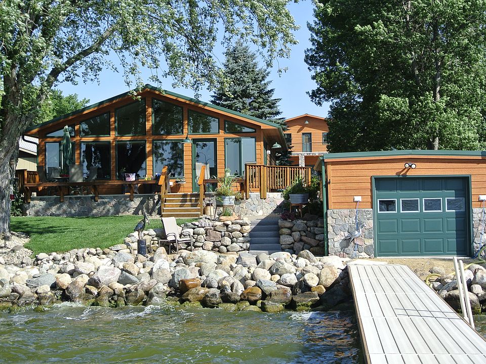 Year round lake home fully remodeled in 2011 with whole house backup generator on home and detached garage with overhead living quarters on beautiful Pickerel Lake, SD. New kitchen complete with stainless steel appliances, granite countertops and tile backsplash. Open concept living dining area with cathedral ceilings plus gas fireplace. Three plus bedrooms with 2 1/2 baths and tons of storage. Updated boathouse with heat, perfect for storing fishing tackle and watersport equipment. Detached deep 3 stall garage with heated floor main level. Main floor included two bedroom areas, full bath, and storage room. Second floor is a large open space complete with theater area, half bath, pool table, fireplace with seating area, dining area, a murphy bed and full wet bar. Property also includes paver parking area, concreated driveway and garden storage shed.