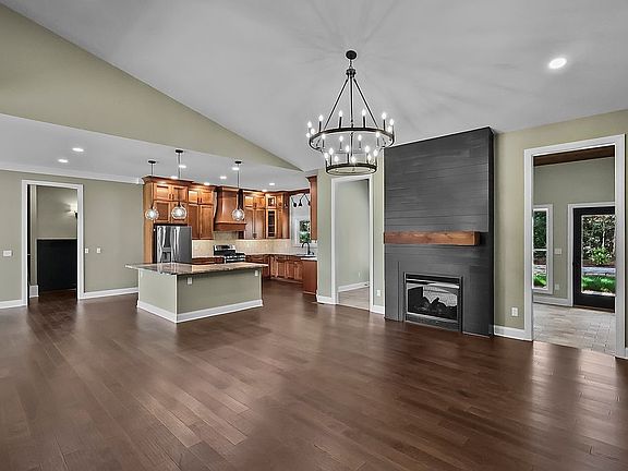 Elegant crown moldingTriple trey ceilingSee-through fireplaceCedar pergolaBlue-tooth controlled illuminated landscapingGas rangeFull overlay cabinetry