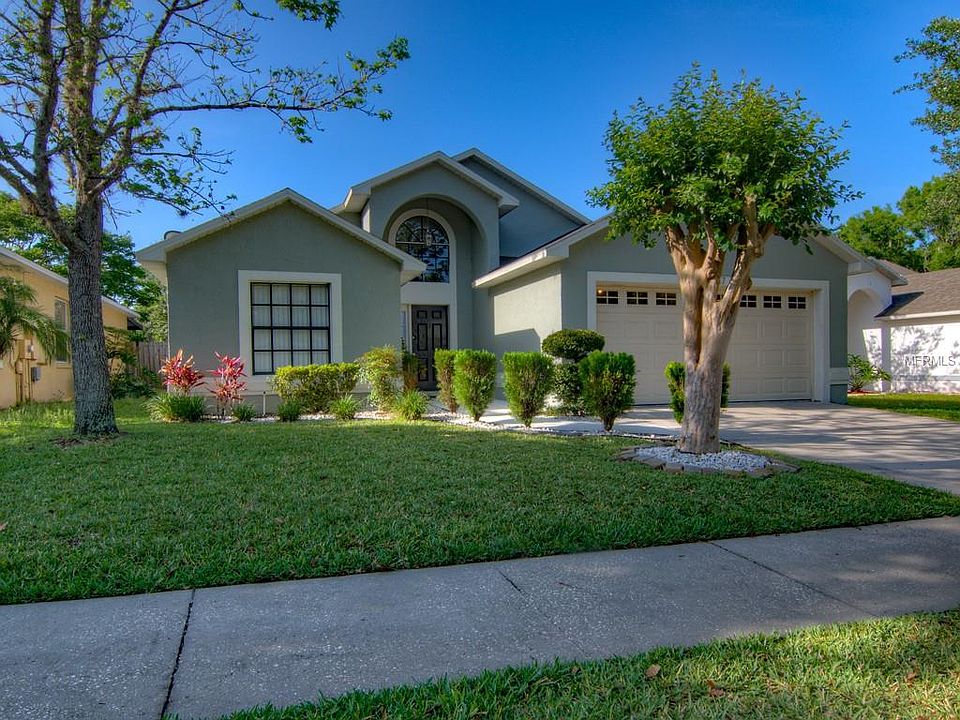 This gorgeous move in ready Oviedo home has a truly unique open floor plan. NEW ROOF 2015. You're immediately greeted by high ceiling foyer and living room layout allows for tons of natural light. NEW FLOORS throughout the entire home, NEW Master bath and a fully REMODELED KITCHEN with Stainless steel appliances and a DOUBLE OVEN!!!! The spacious living room has newly installed high speed fans. The fully covered 266sqft back patio is screened and tiled - ideal for entertaining or just enjoying a cup of coffee in the morning! Very well kept fenced in backyard has a pavered path leading out the back patio. NEW GARAGE DOOR installed 2015, garage includes shelving and securely propped TV. This home will not last long!