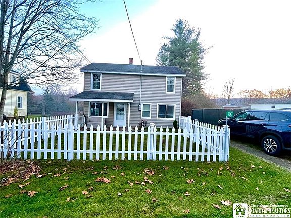 This Home has been Updated and is Move-In Ready NOW!!! All New Flooring, Heating, Windows, Doors & Paint are amongst the majority of Improvements! 3 Bedrooms Upstairs, 1 that has the Laundry Hookups in it for your convenience! There's a Cute Eat-in Kitchen, a Big Deck out Back with a Newer Shed and a Nice, Long Yard. Sit out on the Front Porch and Enjoy Your Pets in the Fully Fenced-in Yard. This is Adorable AND Affordable AND located in the town of Olean- so no City taxes!!! Total taxes are only $1570/year!!!! Make it Yours Now!