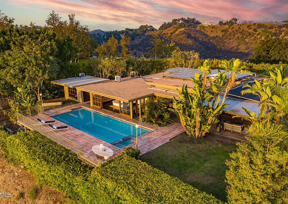 Located on one of the most coveted Beverly Hills streets at the end of a cul-de-sac with stunning views of the ocean, canyons and LA's dramatic cityscape. This private 5 bedroom, 5 bathroom one-story single family home is a must see. Entering the secluded front gate, guarded by beautiful trees, leads you through to the welcoming and spacious open living area from where you will enjoy year-round dramatic scenic views and can enjoy the beautiful greenery of the home's well-stocked gardens; the formal dining room has a window shaded with mature sago palms, a sitting area has picture window offering tranquil views and leads through to a generously-sized, relaxing patio area; a glamorous, modern kitchen adjoins the dining room with large center island containing built-in oven and induction cooktop with breakfast nook and attached laundry room to complete the beautiful setting; a stairway leads down to a lower-level three-car garage; a lovely guest room and large office is ready for you, your family and your friends; the large primary bedroom complete with walk-in closet and designer en-suite bathroom has two sets of picturesque sliding wooden doors offering amazing views and leading directly to the patio and swimming pool areas; the backyard has a large swimming pool, grassy area, palm trees, amazing deck and pool-house gym for you to exercise, relax and enjoy life and more for many years to come!