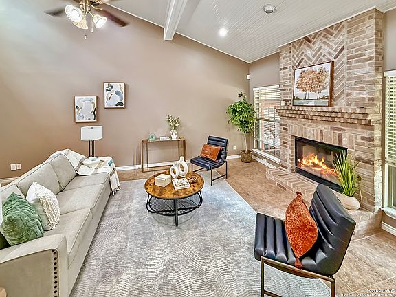 This stunning custom home in the highly desirable Vista Del Norte neighborhood offers the perfect combination of elegance, functionality, and location. Featuring 3 spacious bedrooms, 2 full bathrooms, a dedicated office, and a 2 car garage, this 2105 square foot residence is situated on a generous 0.253 acre corner lot with exceptional curb appeal. An open floor plan with high ceilings, crown molding, shiplap accents, and tasteful updates throughout. The gourmet kitchen is a true centerpiece, boasting a large quartz island, custom cabinetry, stainless steel appliances, double ovens, and a hidden microwave. Thoughtful upgrades include a water softener, reverse osmosis system to the kitchen faucet, fridge water line, a wet bar in the main living room, and a full security alarm system. Major improvements have already been done for you, including all new windows and interior doors, a new roof in 2021, HVAC in 2022, and water heater in 2021. The backyard is your private retreat with a covered patio, hot tub, extended slab, privacy fence, mature oak trees, professional landscaping, a dog run, and a storage shed included. As a plus, the community offers access to a pool, park, playground, and sports courts. Easy access to Hwy 281, a few minutes to Loop 1604, Silverhorn Golf Club, the SA Airport, downtown, shopping, entertainment and top-rated NEISD schools. Schedule your private tour today before this beauty is gone!