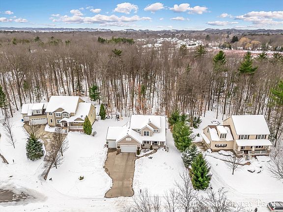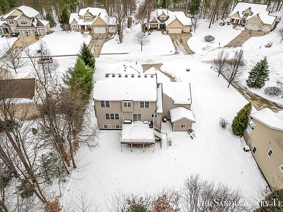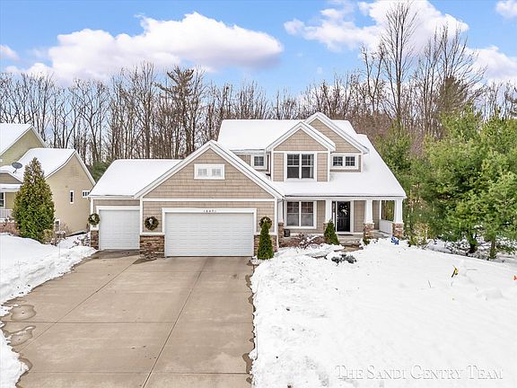 Outdoor living is equally impressive, with an expansive patio, a play area, underground sprinkling, and a private backyard that backs up to a wooded buffer. Additional amenities include a heated 3-stall garage and a 12 x 12 shed for extra storage. Situated in the desirable West Willow neighborhood, the home is steps from a bike path, park, and pond, with access to top-rated Spring Lake Schools. Professionally landscaped grounds complete this exceptional property.