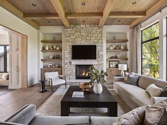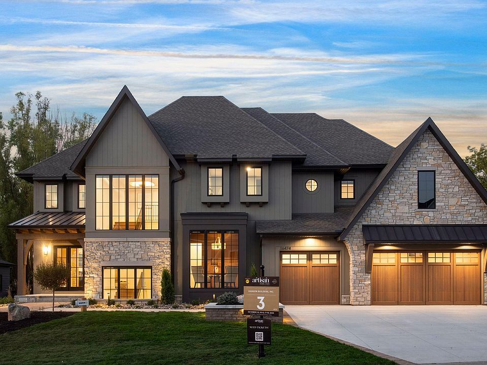 Experience the Woodstone, a Hanson Builders masterpiece, featured in this Fall’s Artisan Home Tour. This newly constructed home merges lavish design with everyday comfort, showcasing impeccable craftsmanship and high-end finishes throughout. The Great Room, Kitchen, and Dining Room boast 12' ceilings and expansive Marvin windows, bathing the space in natural light. Rich wood ceilings with architectural beams infuse warmth and sophistication into the main level. A dramatic two-sided wine display and bar flow into a cozy Sunroom, while a dual-sided stone fireplace connects the Sunroom and Screen Porch. Tucked away for privacy, the main-level Executive Office provides a serene, inspiring workspace. The Owner’s Suite offers a harmonious blend of elegance and relaxation, featuring a vaulted wood ceiling with beams, a private sitting area, and a stone fireplace. Custom vanities and mirrors frame windows overlooking the wooded backyard, creating a spa-like escape. Upstairs, three additional Suite bedrooms each feature unique built-ins—daybeds, desks, or bookshelves—crafted for individuality. The upper level is crowned by a Bonus Room with a 100" TV and a 7.1 full surround sound system, accompanied by a wet bar—perfect for immersive movie nights or casual entertaining. The lower level is an entertainer’s paradise, complete with an Indoor Sport Center, a Golf Simulator with a dedicated viewing area, and a refined Bar and Whiskey Lounge—ideal for hosting memorable gatherings. Car enthusiasts will appreciate the oversized 940 SQFT garage, a perfect complement to this luxurious retreat.