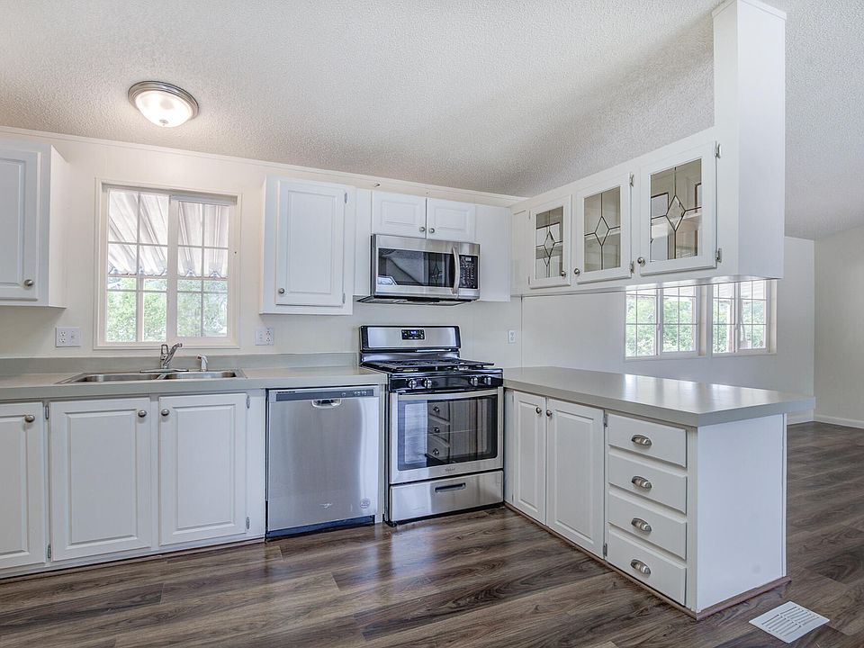 Come and see this turn key manufactured home on a foundation with a detached shop. This quiet property has garden beds, a couple of cement pads for table of to put storage sheds on if desired. There are several garden beds for your vegetables, another outbuilding for chickens or whatever you wish plus a huge, covered wrap around deck. Inside is all new flooring, appliances, counter tops, vanities, and more. This clean fresh home is move in ready.
