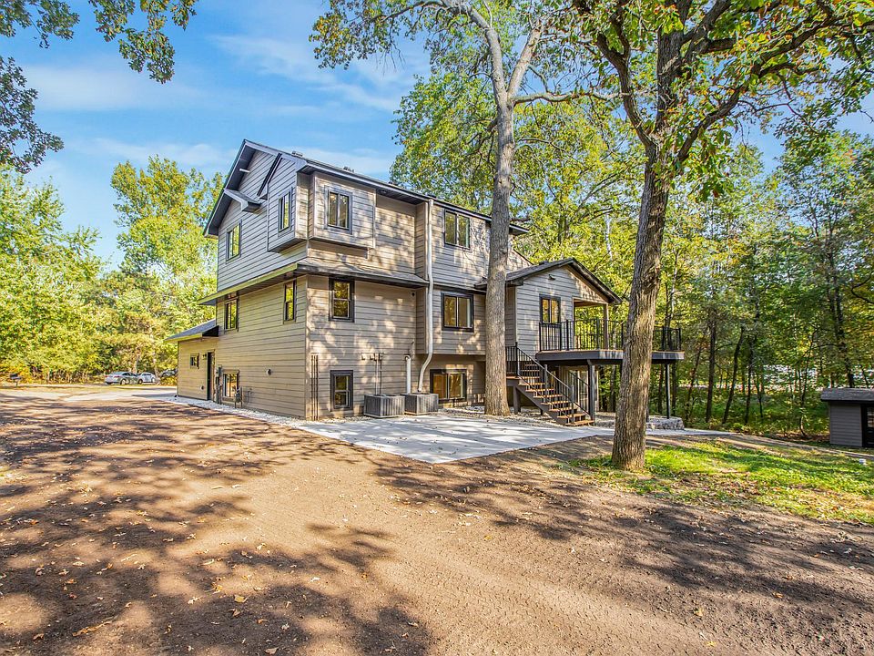 Located on a quiet dead-end street with 2.5 acres, this property offers over 3,000 sq ft home with 5 bedrooms and 4.5 baths. The attached 2-car garage is fully insulated, with finished sheetrock and a new garage door, while the detached 3-car garage includes a finished mancave/office. The home features new LP siding, soffits, doors, and windows. Enjoy maintenance-free decking with metal railing and a master suite with a custom tile shower. The interior boasts all-new doors, trim, vanities, kitchen cabinets, appliances, quartz countertops, and a massive 4x8 island, along with new LVP flooring and carpet. The fireplace has a tile surround, and updates include a new water heater, softener, 2 new A/C units, and 1 new furnace. Outside, new concrete sidewalks and landscaping enhance the property. The entire home has been meticulously updated, with popcorn ceilings removed and drywall repaired, making it feel brand new. Relax on the deck overlooking the private backyard or in the screened-in porch off the lower-level family room.