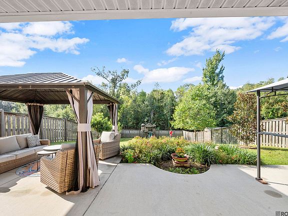 WOW! MUST see home on huge lot with stunning views and privacy!! Feels like you are on a hill in the woods, with total privacy bordered by wooded area and green space. A Kids' dream yard with unlimited space on a sloping hill with a playset that remains. The extended patio provides extra space for seating and entertaining, just add your firepit and get ready for cozy evenings and morning coffee! This 3BR/2BA home offers plenty of space with an open floor plan. The oversized living room is open to the spacious kitchen and dining area. Kitchen features granite counters, stainless appliances, refrigerator, pantry and island seating. The mudroom and storage from the garage entry is convenient for shoes, backpacks, etc. The bedrooms are spacious with a large primary suite/bath and 2 bedrooms sharing a spacious Jack and Jill bath. There is a built-in desk area off the hallway that is perfect for working from home. NO CARPET here with beautiful wood floors in living area and bedrooms and tile in wet areas. Gazebo for covered seating and covered sink area included. Energy efficient home includes a tankless hot water heater, radiant barrier decking in the attic, Low E-3 double-insulated windows, Walk to Bullion Primary School which is just around the corner. Also zoned for Bluff Middle and Dutchtown High School per ascensionschools.org. Convenient location off Airline Hwy close to BR.