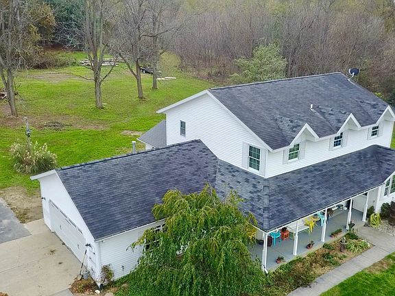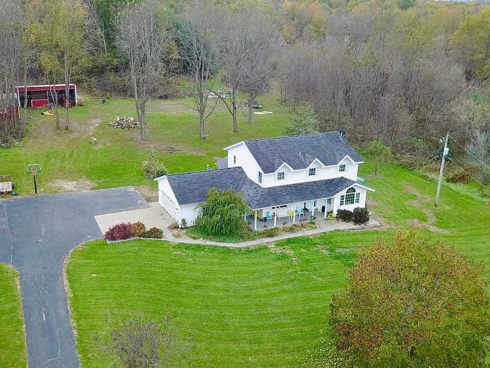 This spacious custom built home is nestled on over 16 wooded acres w/walking trails, fruit trees, wild flowers, morel mushrooms and so much more. Kitchen features granite counters seated on solid hickory cabinets with English dovetail drawers that were custom made by Timber Valley of Otsego, MI. Enjoy watching sun rises and sets in 3 season sun room with cathedral ceiling or head out one of several french doors leading to the deck and listen to the birds sing as you watch deer run by.The 2,304 barn is a home shop dream that is insulated with a NG furnace, Wood stove & AC, plumbing, 9 ft garage door and even a 6 '' thick concrete floor designed for heavy machinery in the back half.Ornate Pool Table included with sale, home warranty + a $5K flooring allowance so you can pick your floor