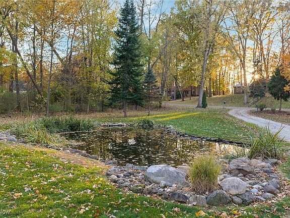 Welcome to this private retreat that you can live in year round located in desirable Carriage House Estates. This inviting abode is situated on a one and a half acre lot with a pond in the front of the home. This cape cod style home is cedar sided and has a two car attached garage. The home features three bedrooms and two full baths. The kitchen boasts stainless steel appliances, updated lighting, granite countertops, a large pantry, and tons of cabinet space, which opens to the dining room that is perfect for entertaining. The great room has a stunning wood burning fireplace that is perfect for chilly winter nights. The primary bedroom is situated on the main floor along with a full bathroom. The other two bedrooms are spacious and located on the second floor along with another full bathroom. Don't forget the first floor laundry room, as well. The backyard is absolutely amazing. Enjoy fall evenings on your private stamped concrete patio overlooking a private and treed lot. This home has been lovingly maintained and is awaiting a new owner. Call to schedule a showing today to make this your new address!!