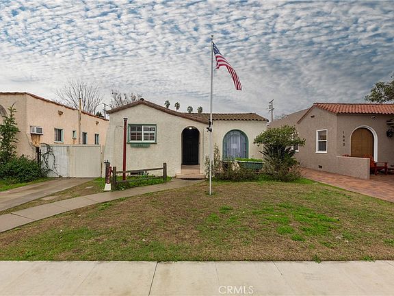 Spanish home in a quiet neighborhood of North Long Beach. This home features 3 bedrooms and 2 baths and includes a permitted primary bedroom with 3/4 bath. The home was recently upgraded with brand new dual pane windows of which the warranty will transfer to the new owners. The kitchen was remodeled by previous owner and comes with all appliances, including washer and dryer. The home also includes original hardwood flooring, central HVAC, newer water heater, large shed that houses the laundry, sliding gate for alley access to the yard and covered driveway. Covered patio is a nice addition to enjoy the quiet and see your backyard raised garden beds.