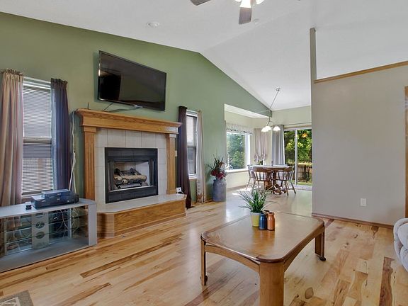 With views of Tanganyika Wildlife Park this home is definitely a must see. Incredible floor plan with 3 bedrooms, 2 bathrooms on the main level, 3 car garage, hardwood floors in kitchen/dining combo and living room. Full finished basement with 2 bedrooms, 1 bathroom and rec/family room. Walk in closets in both bedrooms. Beautiful fireplace, all window coverings to remain in addition to kitchen appliances and washer and dryer. The neighborhood has sidewalks, playground and 2 fishing ponds.