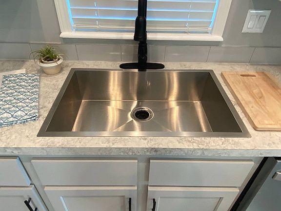 Pond viewKitchen islandCovered deckStainless steel farm sinkOpen conceptStorage areaWalk-in shower