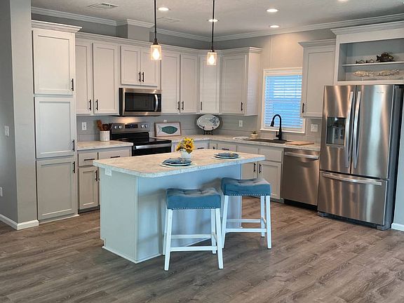 Be the first owners of this open concept 2 bedroom, 2 bath home. Features include: crown molding, stainless steel farm sink, stainless steel appliances, kitchen island, light grey cabinets with white counter tops, patio doors in living room & dining room with pond view that open to a 10x24 covered deck, walk-in shower, linen closet & double sinks in primary room bath, walk-in closet in primary bedroom, inside laundry room, storage area 12x8, carport 12x40. You must see this one! $716 per Month-Lot Rent Includes: Spectrum Select TV Package with 2 Set Top Boxes, Internet at 400 mbps, Water/Sewer, and Garbage pickup twice weekly. A Land Lease Manufactured Home 55+ Community (239 Homes) Located On The Scenic Little Manatee River with Entrance to Tampa Bay and the Gulf of Mexico. 30 Minutes South of Tampa off US 41. It is rural but it is minutes from shopping, beaches, and medical facilities. Come enjoy our quiet, active, and owner-occupied community (renting homes is not allowed). Our community has many amenities, including, but not limited to our beautiful Heated Pool, Shuffleboard Courts, Horseshoe Pits, Fire Ring, Bocce Ball, Pickle Ball, Tiki Hut, Clubhouse with Screen Room, Commercial Kitchen, Stage, Recreation Hall, Laundry, Memorial Bridge, 3 Ponds, Private Fishing Pier, Boat Ramp, Fish Cleaning Station, and 30 Boat Slips. Pet Friendly with Off-Leash Dog Park. Small Dogs and/or Cats Maximum 25 Pounds and 16" at Shoulder at adulthood-Limit of 2 Pets. Secured Storage, Unsecured Storage & Boat Slips are Available for Residents to Rent. All prospective buyers must come to the office prior to purchasing a home for a background and credit check. Contact Chulavista Landings Office for more information.