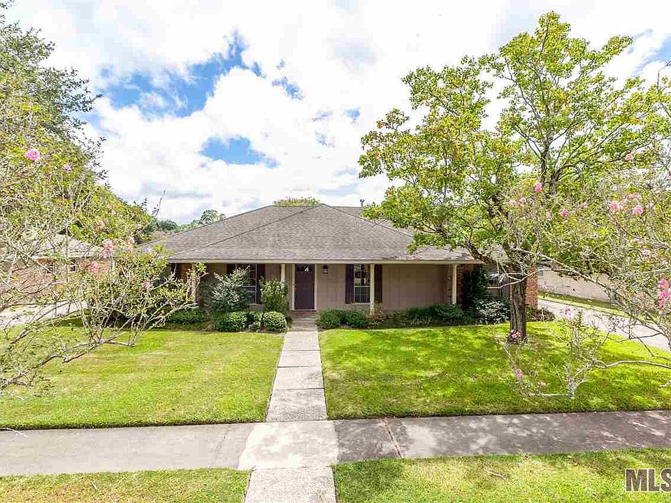 You will love the gleaming wood floors as well as the many upgrades made over the past few years including kitchen remodel in 2016 which included quartz counters, drop in sink, and paint, new carpet in bedrooms and tile floor in laundry and half bath in 2020, ceramic stove top 2011, Duct cleaning 2017, hall bath remodel in 2009! This traditional 4 bedroom/2.5 bath home is conveniently located near Perkins Rowe and the Mall of LA with easy access to I-10 or to LSU via Highland road. Wood floors in foyer, living room, Dining room, den, breakfast room, and hall to bedroom wing. The den features a fireplace with raised brick hearth, built-ins, and windows overlooking porch. The spacious breakfast area and kitchen feature quartz counters, undermount stainless sink, double oven, ceramic tile floors, pull out drawers, and pantry. All the bedrooms have large walk-in closets. You will especially love the updated hall bath with framed mirror, beautiful tile floors and shower. The master bedroom has one regular closet plus a walk-in closet in the master bath. The rear carport and covered patio overlook the large fenced yard.