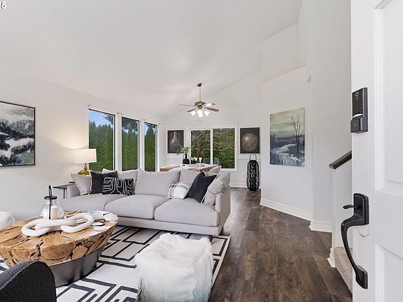 Welcome to this beautifully maintained home in the heart of Troutdale! This move-in ready residence features high vaulted ceilings, new flooring, an updated kitchen, with quartz countertops, newer appliances, and fresh interior & exterior paint for a crisp, modern look. The spacious owner's suite and updated bath offer comfort and style, while the mature landscaping create a private outdoor retreat complete with RV parking. Major updates include a new roof (3yrs), newer AC and furnace (6-7 yrs), irrigation system (10 yrs), and LVP flooring on the main (7-8 yrs), upstairs flooring in bathrooms (2025), tiling in Owner's Suite(2025). Enjoy outdoor living on the updated rear deck and enclosed yard with newer fencing. Lava rock area is great for an outdoor firepit. Conveniently located near parks, schools and downtown Troutdale amenities--this home combines thoughtful updates with timeless charm. Make this home yours before the holidays!