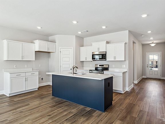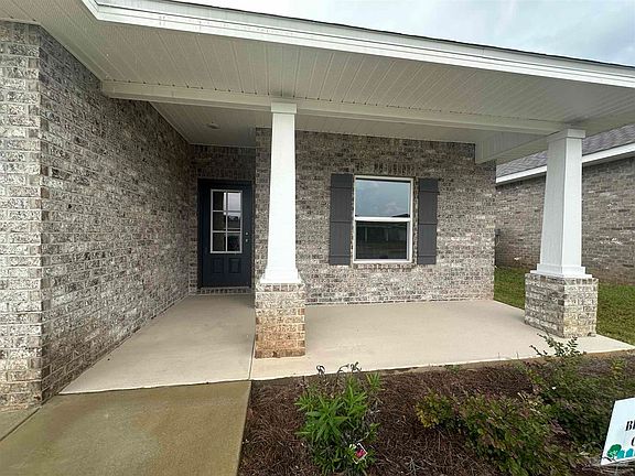 NEW COMPLETED CONSTRUCTION. FRIDGE AND 2” CORDLESS BLINDS in the prestigious Bentley Oaks Neighborhood. 3/2/2 1690 sq ft home. This home is 4 sides brick, 9 ft ceilings, beveled LVP flooring in all main areas, carpet in bedrooms and closets. Covered front porch. Upgrade selections will depend on stage of home. Carerra frost 3 cm quartz in wet areas. Conveniently located minutes from I-10, easy commute to bases, downtown and to the beach. The spacious Cypress plan has 3 bedrooms, and 2 baths. The design has an open kitchen with large prep island and the popular Shaker Style cabinets. Cabinet color for this home is white, with the island being gale force (Dark Blue). The cabinets are full over lay birch wood tongue and groove with soft close doors and drawers. The beveled LVP is colored driftwood, wall color is First Star. Selections could be changeded depending on stage of home. Stainless appliances are featured in kitchen. A built-in microwave is included. The breakfast room has easy access to very nice, covered patio for entertaining, a wonderful pantry and LED lighting makes meal prep a dream. The master suite has trey ceilings with crown molding, and a ceiling fan. Deluxe master bathroom has a spacious shower, luxury quartz tops, framed mirrors over the sinks, LED ceiling lights, and large walk-in closet. Durable Luxury Vinyl Plank floors are in all areas except carpet is in bedrooms and bedroom closets. Quality construction flourishes throughout this home. Double garage, 30 year architectural shingles, energy efficient double pane vinyl windows, storm shutter window protection, and covered by StrucSure, a 10year limited warranty. PHOTOS ARE OF ACTUAL HOME.