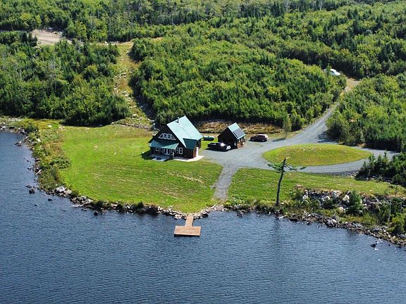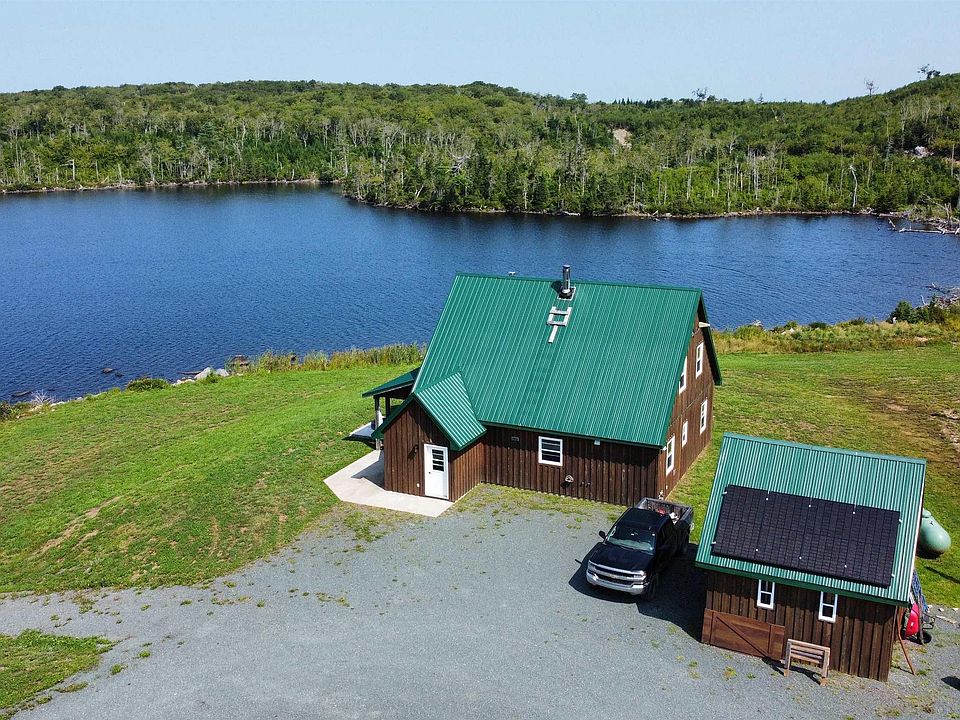 Escape to your private retreat with this stunning 1.5 story chalet-style home perfectly situated on Cuddihy Lake off the Upper Glencoe Rd in Guysborough County. Nestled by the tranquil lakeside, this off-grid property offers unparalleled privacy and seclusion. 3 acres will be surveyed out of 100 acre parcel. Seller is open to selling additional land. This charming home features chalet architecture with warm wood accents, vaulted ceilings, stunning live edge finishings, and large windows that flood the space with natural light, offering breathtaking views of Cuddihy Lake. This home was build on concrete slab in 2022. The main floor features open concept kitchen, dining, living area with wood fireplace. Also on main floor is master bedroom with 4 pc ensuite, another 3pc bathroom, laundry/storage/utility room and a spacious mudroom. Upstairs you will find 2 additional bedrooms. Solar energy with panels located on shed roof is used. Propane for heat, hot water, stove. A detached shed 16x16 adds convenience and extra storage space for your outdoor gear. Nice concrete deck and stone firepit overlooking the lake. This unique property is ideal for those seeking a peaceful, self-sufficient lifestyle, surrounded by nature. Whether you're looking for a year-round residence or a seasonal getaway, this off-grid chalet provides the perfect setting for your dream escape. Situated on long driveway, Antigonish is about 30 minutes and Guysborough about 20 minutes drive.
